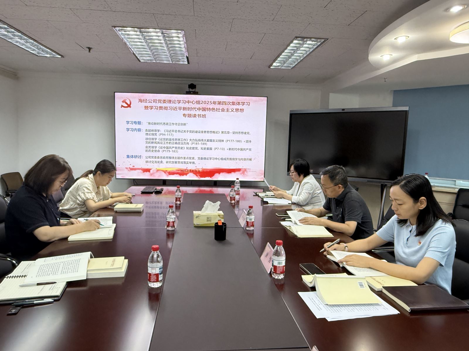 8月26日,海经公司党委理论学习中心组开展2025年第四次集体学习暨学习贯彻习近平新时代中国特色社会主义思想专题读书班。党委书记、董事长袁超峰主持会议,党委理论学习中心组成员参加学习,党群人事办公室及纪检审计部相关人员列席。